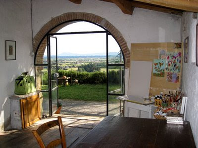 During the spring and summer months, when the weather permits, it transforms into my painting studio.